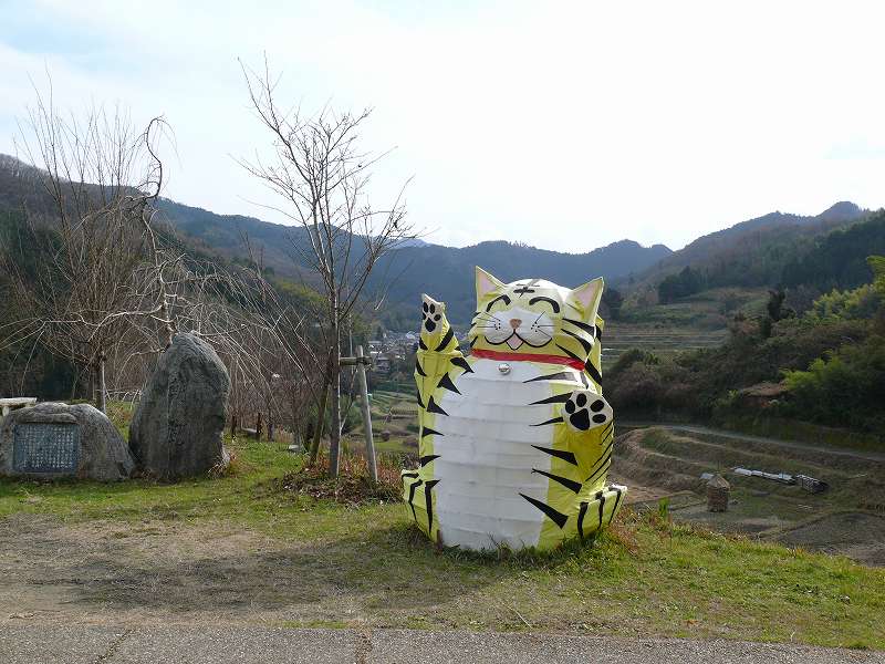 朝風峠を越えると、稲淵展望台にねこトラがお迎えしてくれました。